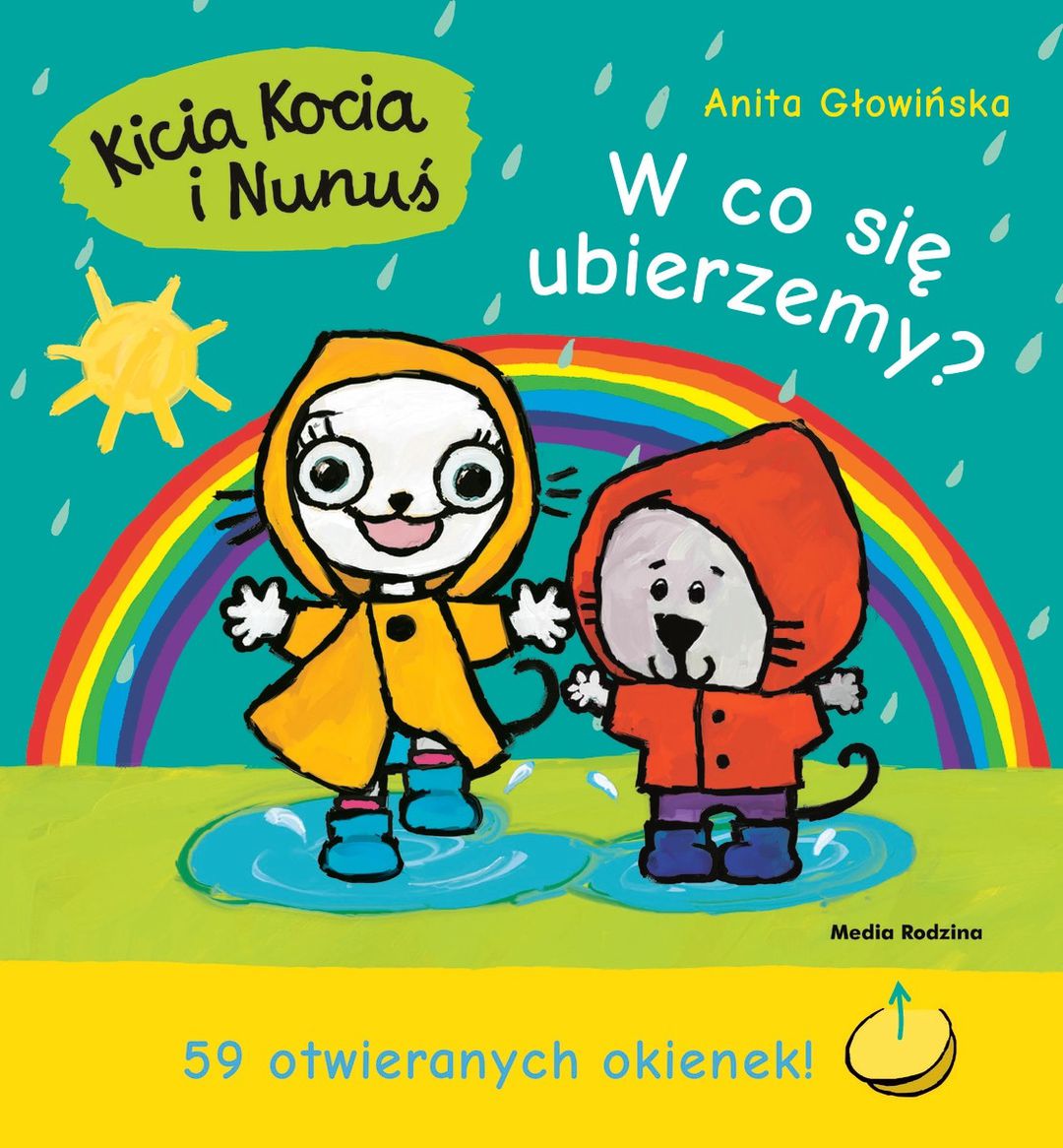 Kicia Kocia i Nunuś wiedzą, że w każdą pogodę można się dobrze bawić, trzeba się tylko odpowiednio ubrać. Nunuś wkłada kalosze, kiedy pada, ubiera się ciepło, kiedy jest mroźnie, a na plażę zabiera okulary przeciwsłoneczne i krem z filtrem. Nunuś wie już wszystko o pogodzie! Wszystkie odpowiednie ubrania i przedmioty ukryte są w otwieranych okienkach. [Powyższy opis pochodzi od wydawcy]