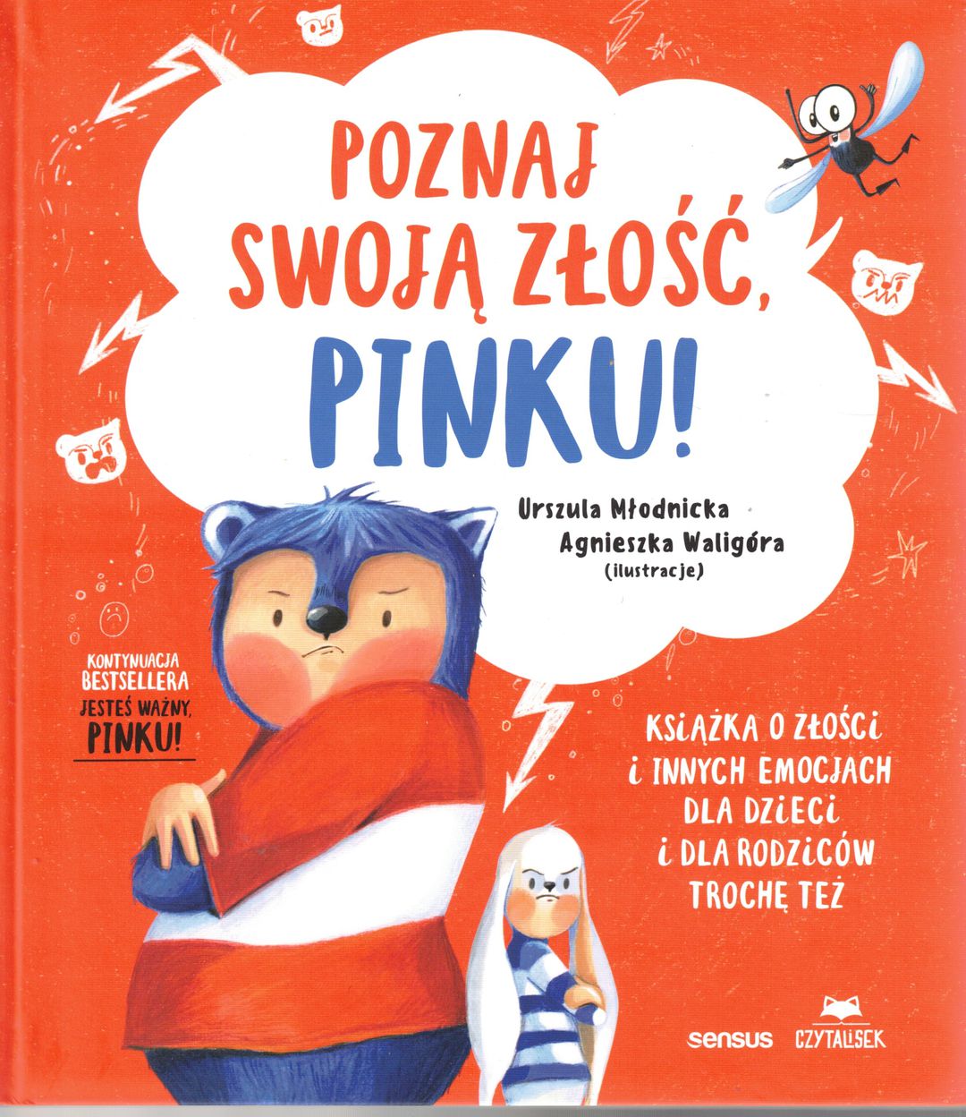 Pink to mały niebieski stwór, który jedno ucho ma okrągłe, a drugie trójkątne. Nie lubi występować - zawsze się wtedy denerwuje. Jest mu przykro, kiedy Fiszka go obgaduje. A złości się, gdy coś mu nie wychodzi albo ktoś go do czegoś zmusza. - Wygląda na to, że złość przejęła nad tobą kontrolę. Tak się czasem zdarza. - To ja nie chcę się złościć. Złość jest głupia. - Pinku, sama złość jest OK. Problem w tym, że gdy tracimy nad nią panowanie, mówimy lub robimy rzeczy, których potem żałujemy. - No właśnie! KAŻDY SIĘ CZASEM ZŁOŚCI, WIESZ? To normalne. Złość jest ważna i potrzebna, ponieważ staje w Twojej obronie. Mówi Ci, że się na coś nie zgadzasz, i daje energię do zmiany. Czasem jednak bywa ogromna i łatwo stracić nad nią panowanie. Ale wiesz co? Dobra wiadomość jest taka, że możesz wpływać na swoją złość - są na to sposoby.